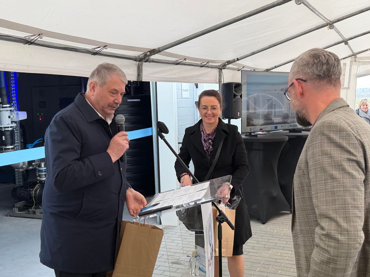 W uroczystym otwarciu udział wzięli znamienici goście. Obecni byli m.in. prezes Plady Łukasz Sokołowski wraz ze współpracownikami, wójt gminy Chrząstowice Florian Ciecior, jego zastępczyni Daria Pawlak, przewodniczący rady gminy Łukasz Nowak, a także przedstawiciele ościennych samorządów, firm oraz przedsiębiorstw z branży wodno-kanalizacyjnej. Swoją obecnością wydarzenie zaszczycił również wicewojewoda opolski Piotr Pośpiech.